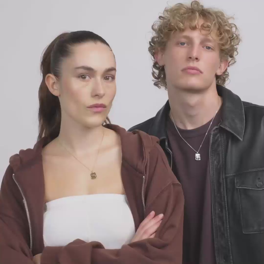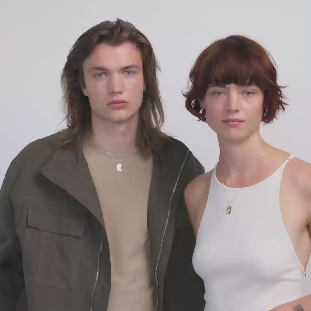 The design of a zodiac necklace can differ. Some of our pendants have a completely round coin shape with a satin matte surface and the constellation marked with crystals. Other chains have a pendant with a more organic expression and uneven edges reminiscent of a good luck charm.