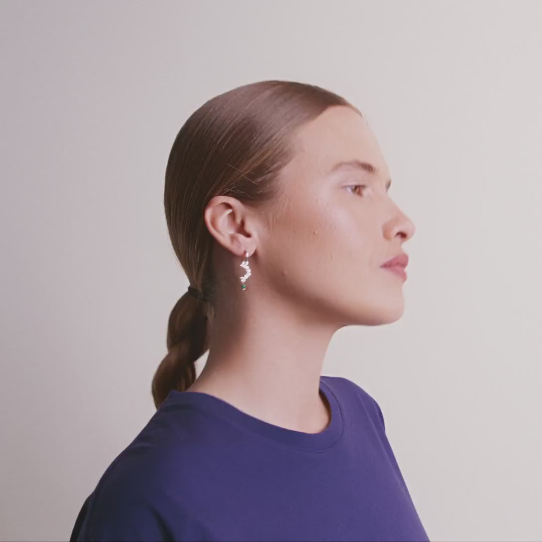 At blande designs og metaller giver dybde til dit look. Det viser, hvad din stil er, og tilføjer et touch af personlighed. Begræns dig ikke til én stil eller én slags metal – mix forskellige styles som ørestikker, huggies og cuffs og vær ikke bange for at bruge både guld og sølv sammen. Det vigtigste er at finde harmonien i de forskellige styles og skabe en sammensætning af single øreringe, der afspejler, hvem du er.