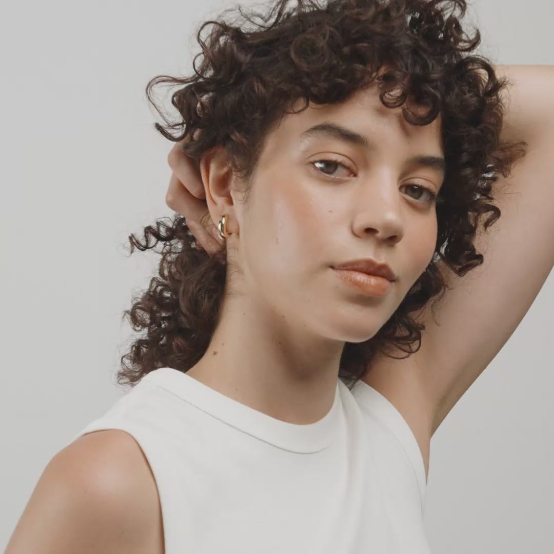 Tilføj et musthave-item til din smykkesamling med de guldbelagte MINE hoops fra Pilgrim. Et chunky og blødt design giver øreringene et classy og feminint look, der med den blanke overflade skaber det ultimative blikfang. Style dem med en oversized hvid skjorte og jeans for et effortless look, der balancerer det rå og det feminine. Øreringene er lavet af 99% recycled materiale med omtanke for miljøet.