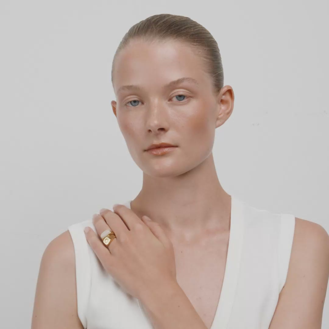 Doppelt hält besser! Die PRISM-Ringe von Pilgrim kommen als Set mit zwei vergoldeten Signet-Designs und bringen dir gleich doppelt so viele Styling-Optionen. Einer der Ringe ist mit einem ovalen White Jade-Halbedelstein veredelt – für einen soften, dreamy Vibe, während der andere mit einer geprägten Sonne ein cooles, handgemachtes Flair versprüht. Beide Ringe sind in der Größe verstellbar und passen sich deinem Style flexibel an – ob solo getragen oder als angesagter Stacked-Look, du entscheidest je nach Mood. Gefertigt aus 92% recyceltem Material – weil gerade die kleinen Details den Unterschied machen.