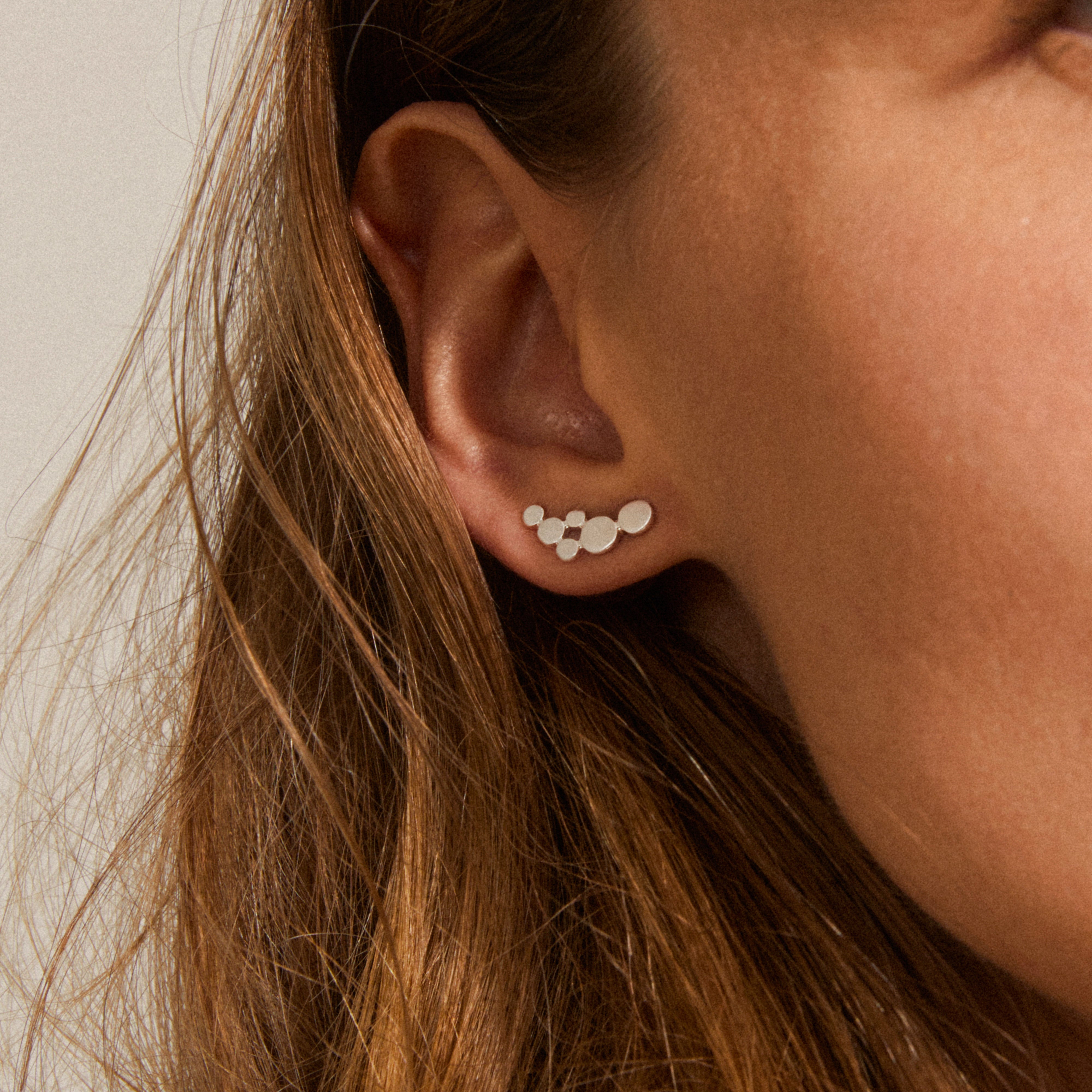Weniger ist mehr! Diese feinen Ohrstecker begeistern mit einem klaren, zeitlosen Design. Kleine Kreise in unterschiedlichen Größen schmiegen sich in einem harmonischen Muster an die Kontur deines Ohrs. Die Ohrringe sind versilbert und überzeugen mit einer edlen, seidenmatten Oberfläche. Trage sie solo für einen minimalistischen Look oder kombiniere sie mit weiteren Ear-Pieces für deinen ganz eigenen Style. Ein echter Klassiker, der zu jedem Outfit passt und nie aus der Mode kommt. Gefertigt aus 90% recyceltem Material – weil jedes Detail zählt.