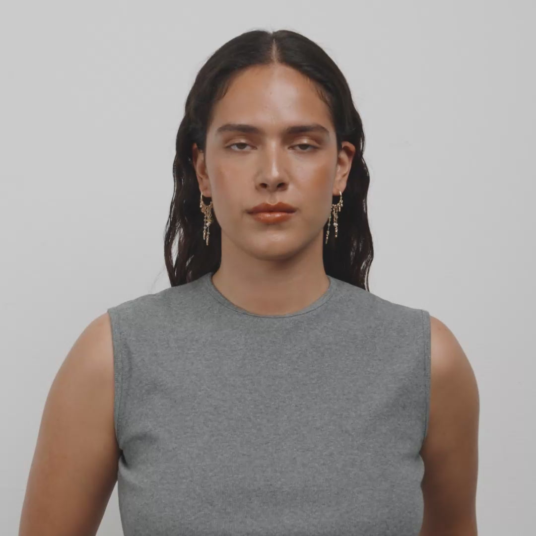 Dancing with the tide! Med de magiske PRISM hoops fra Pilgrim får du et par summer essentials som virkelig løfter beachy vibes til nye høyder. De gullbelagte creolene er pyntet med solmotiver, starfish-charms, små ferskvannsperler og glassperler – alt sammen mikset for å gi deg et levende og poetisk uttrykk. Dette er et ekte lux-boho statement som fanger den carefree vaca-feelingen og gir looken din en dreamy seaside energy, enten du rocker dem på solfylte dager med sand mellom tærne eller på magiske kvelder under åpen himmel. Laget av 92 % resirkulert materiale – fordi de små detaljene faktisk gjør en forskjell.
