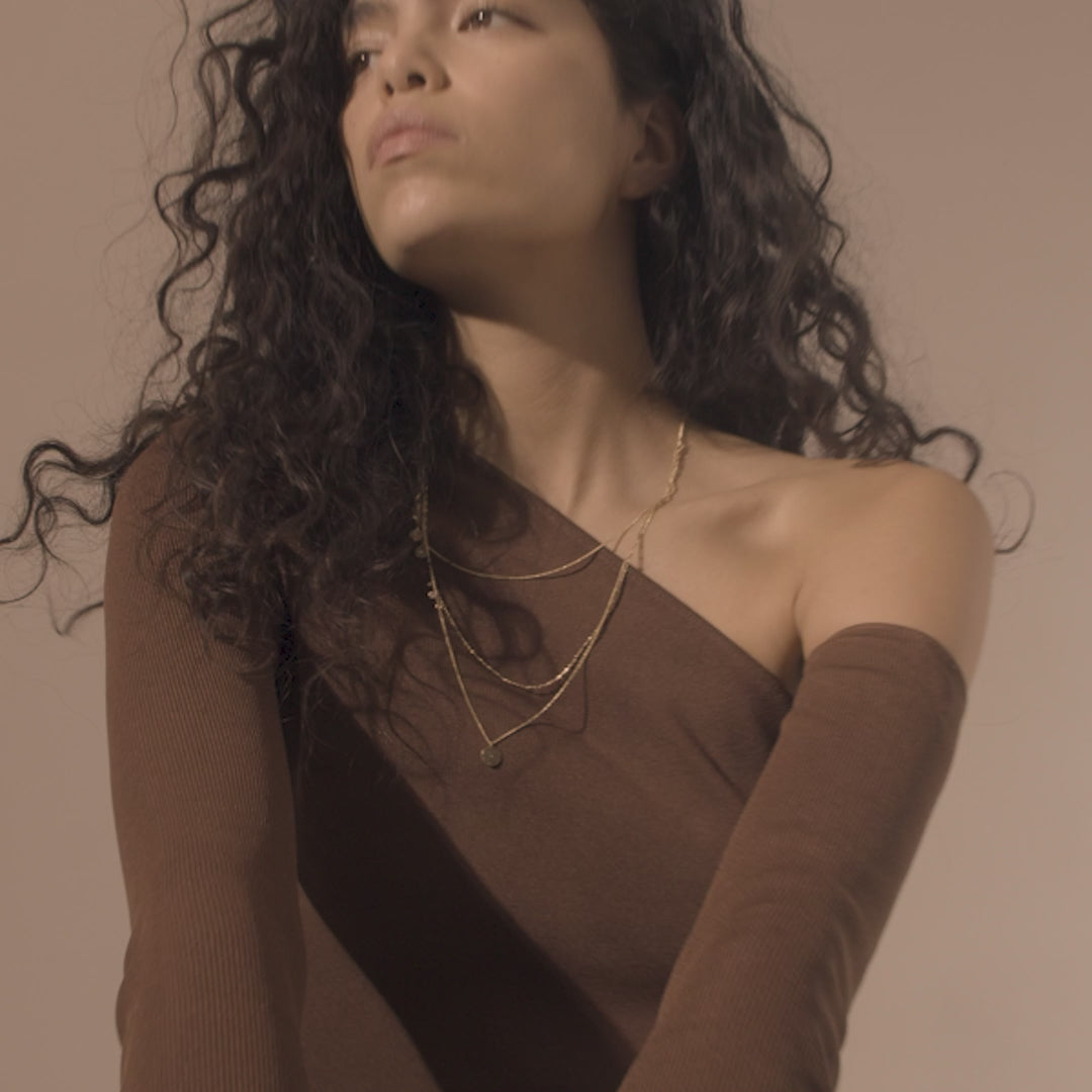 - The slender and delicate chains create a layered look